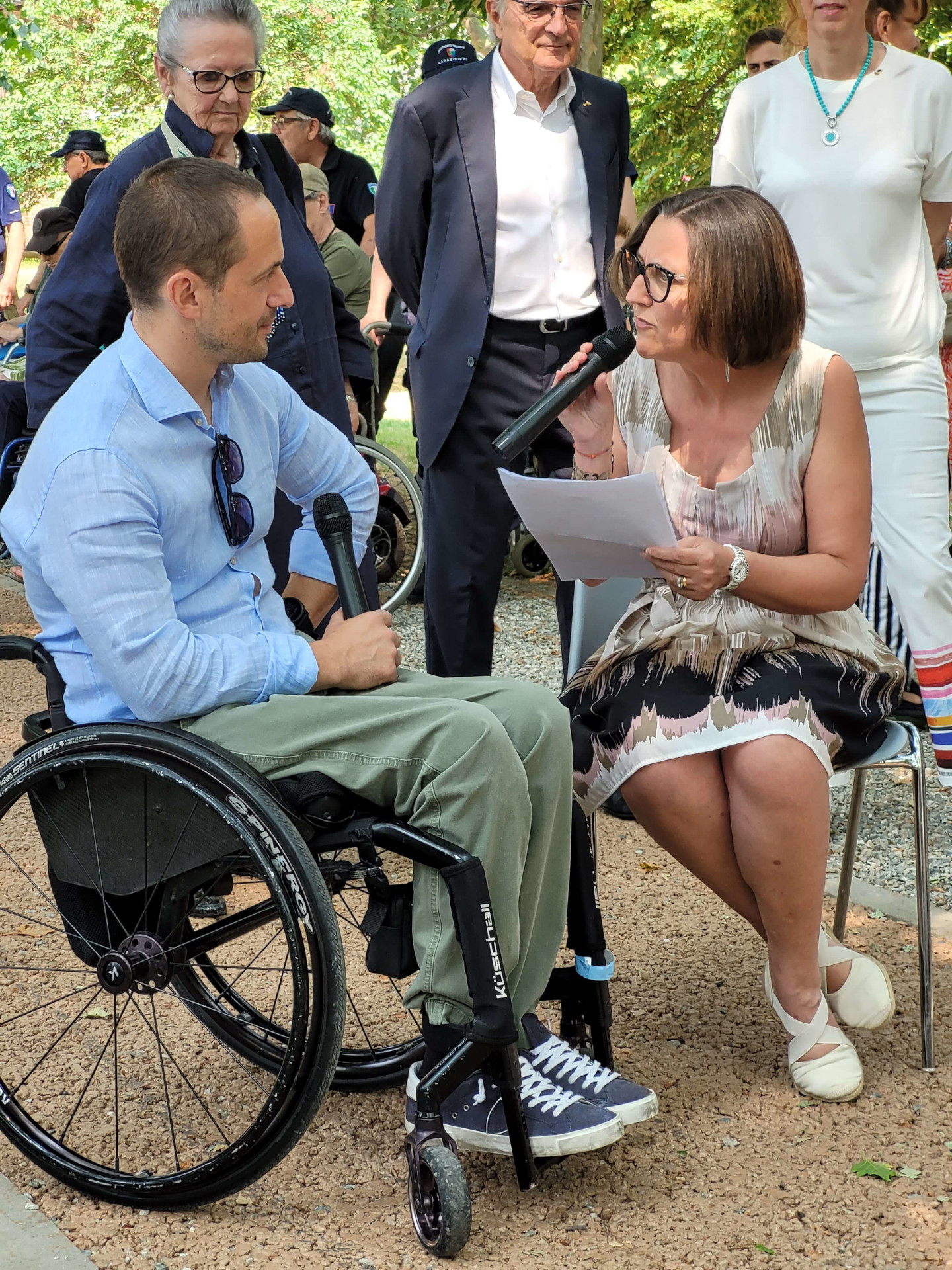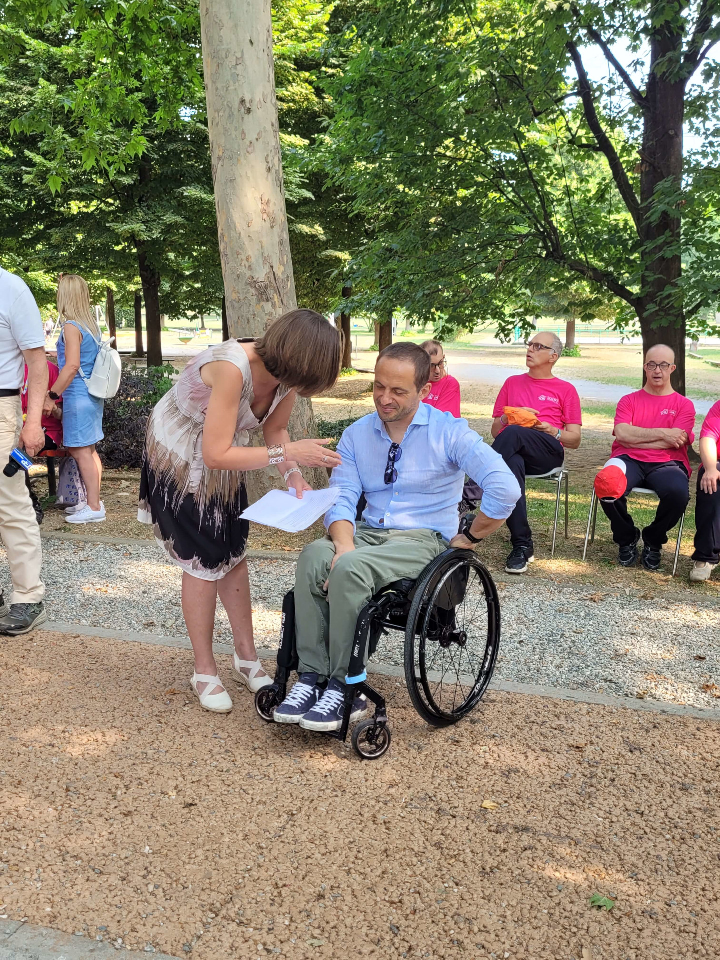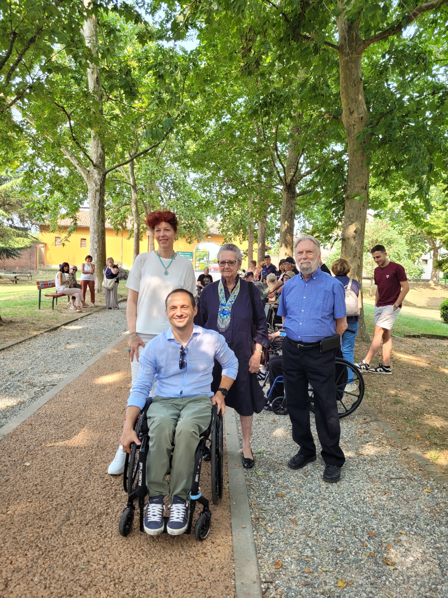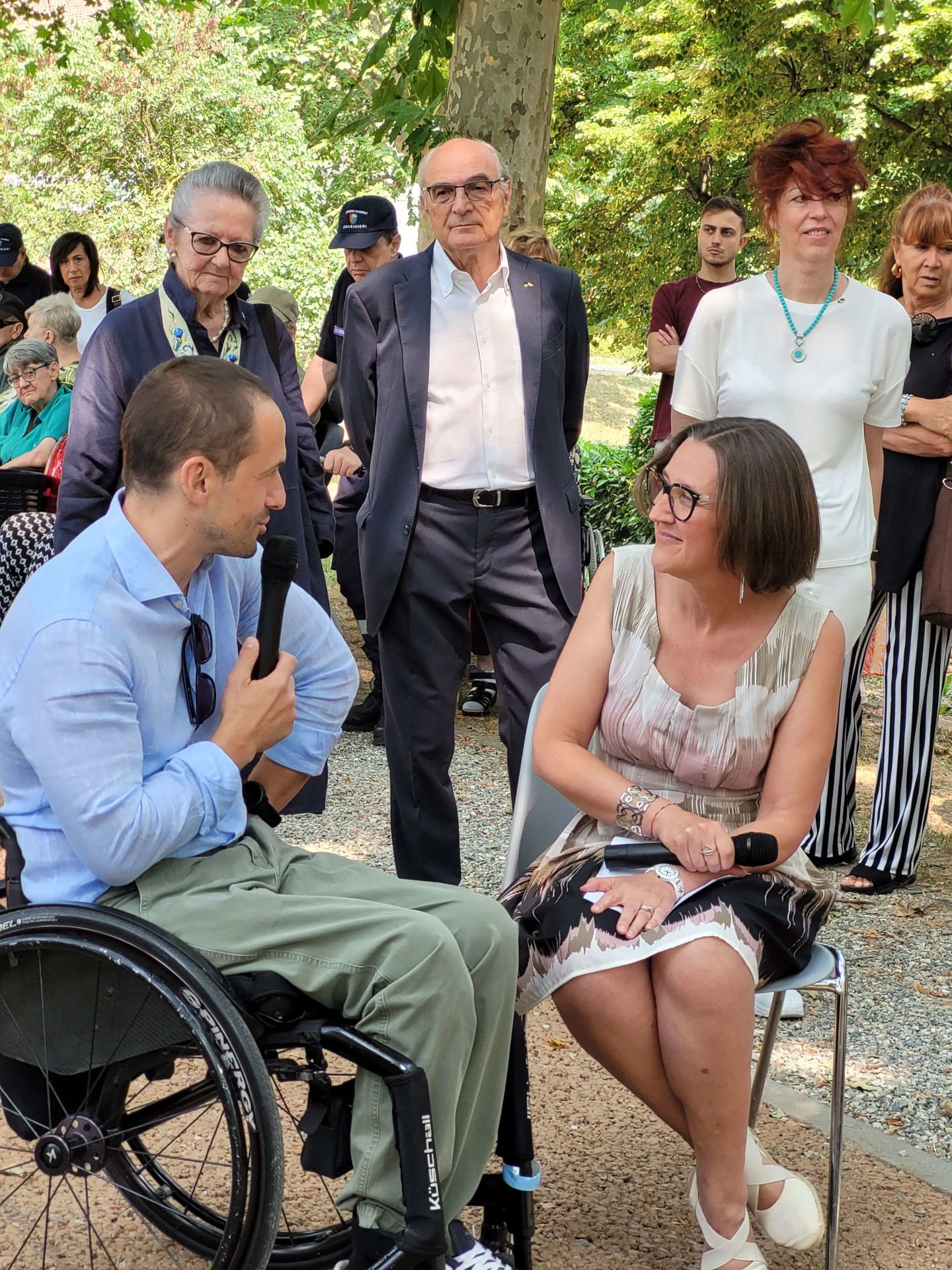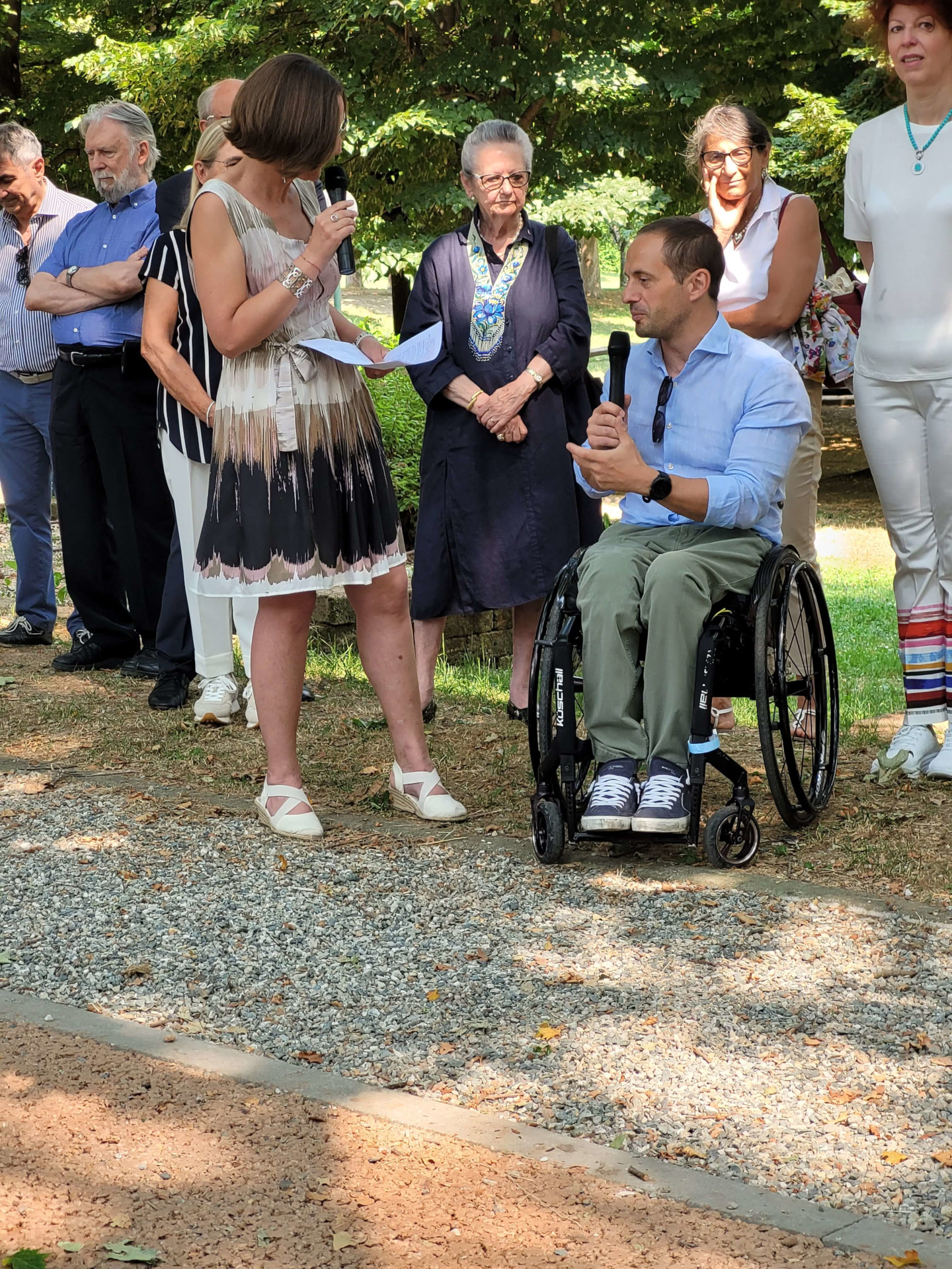 Marco Dolfin, chirurgo ortopedico e nuotatore paralimpico della Nazionale italiana, il testimonial d’eccezione dell’inaugurazione del nuovo ingresso e del nuovo viale del Parco Cascina Vigna di Carmagnola, completamente rinnovati per garantire accessibilità a tutti. L’evento si è tenuto il 21 giugno a partire dalle ore 10:30 presso l’ingresso principale del parco, in via San Francesco di Sales 188. A condurre la mattinata la giornalista Ilaria Morra, che ha intervistato Marco Dolfin per approfondire il suo percorso umano e professionale. Al termine dell’inaugurazione, Casa Roberta ha offerto un aperitivo nel cortile del Parco.
